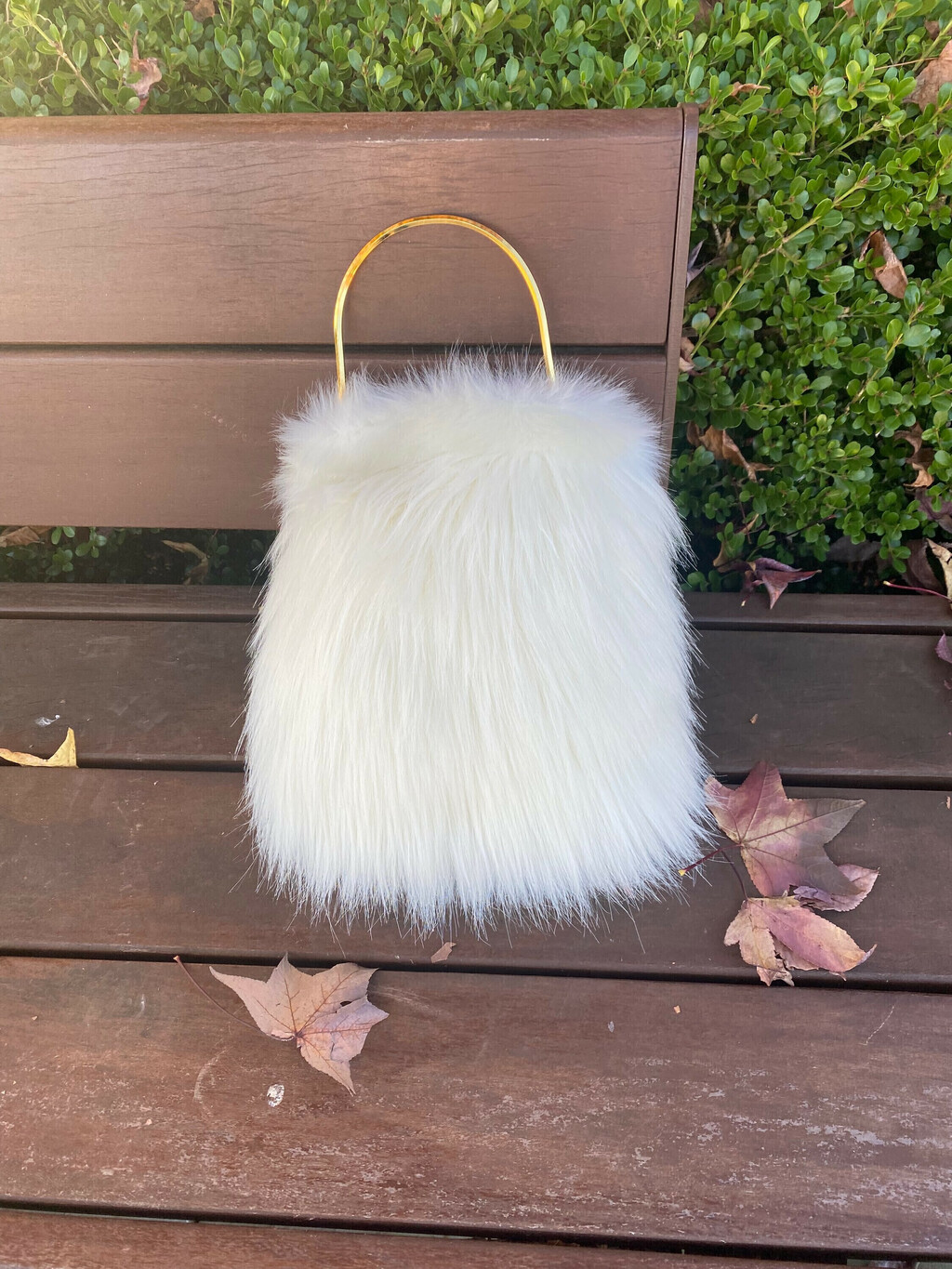 Bolsa com alças em metal.